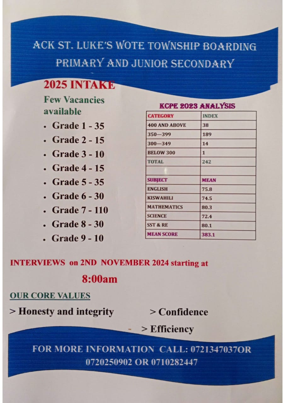 ACK St. Luke’s Wote Township is a premier institution renowned